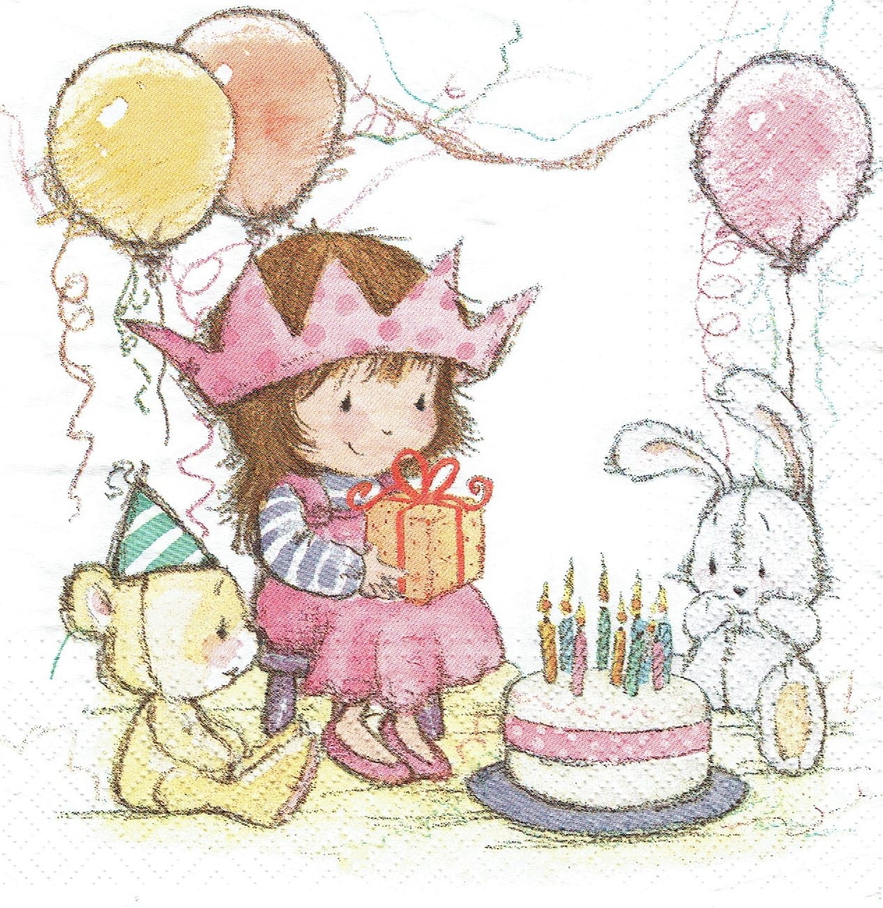 Serwetka decoupage 33x33 cm - dziewczynka, tort, urodziny