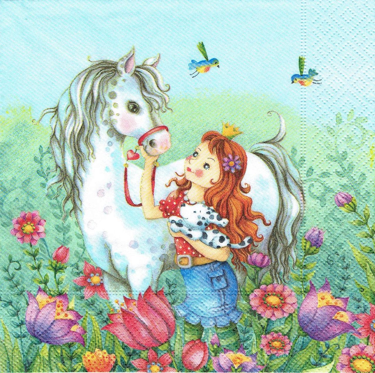 Serwetka decoupage 33x33 cm - dziewczynka z konikiem