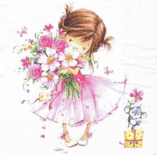 Serwetka decoupage 33x33 cm - dziewczynka z kwiatami, kwiaty