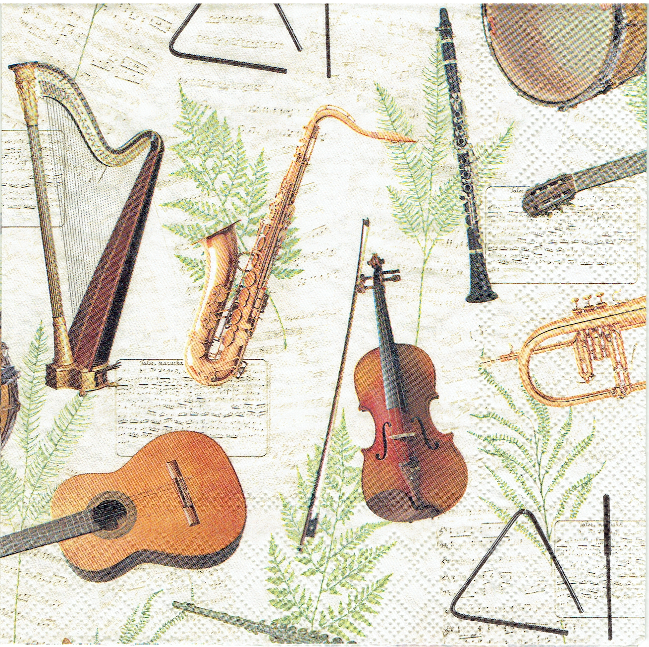Serwetka decoupage 33x33 cm - instrumenty, nuty, liście