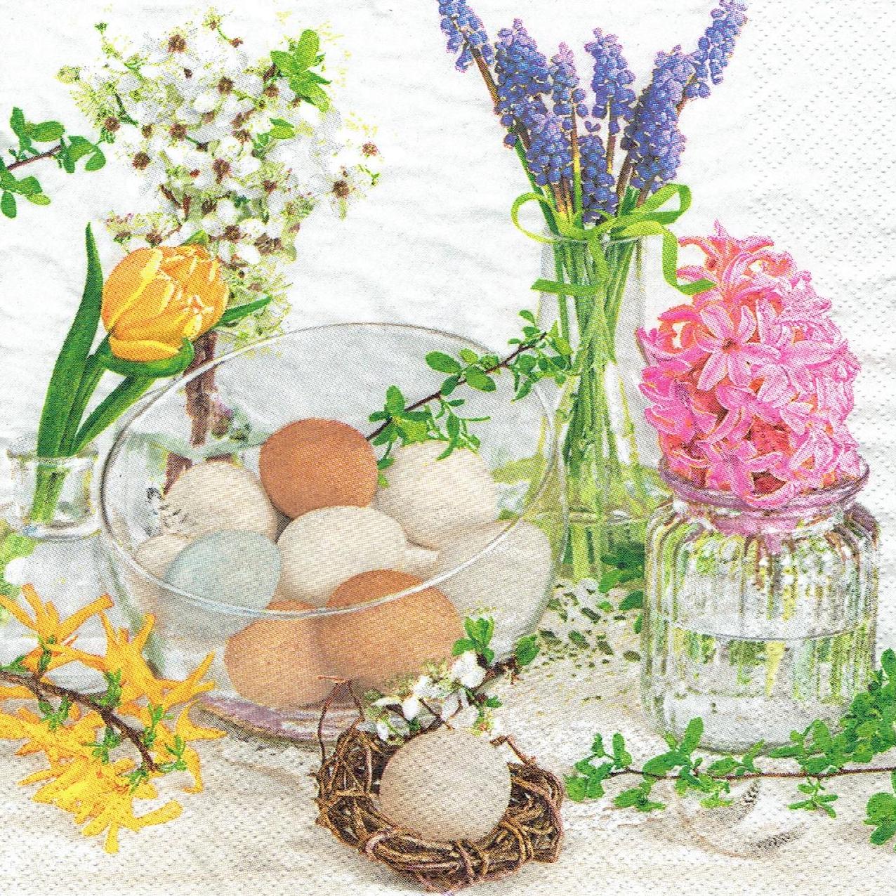 Serwetka decoupage 33x33 cm - jajka i kwiaty