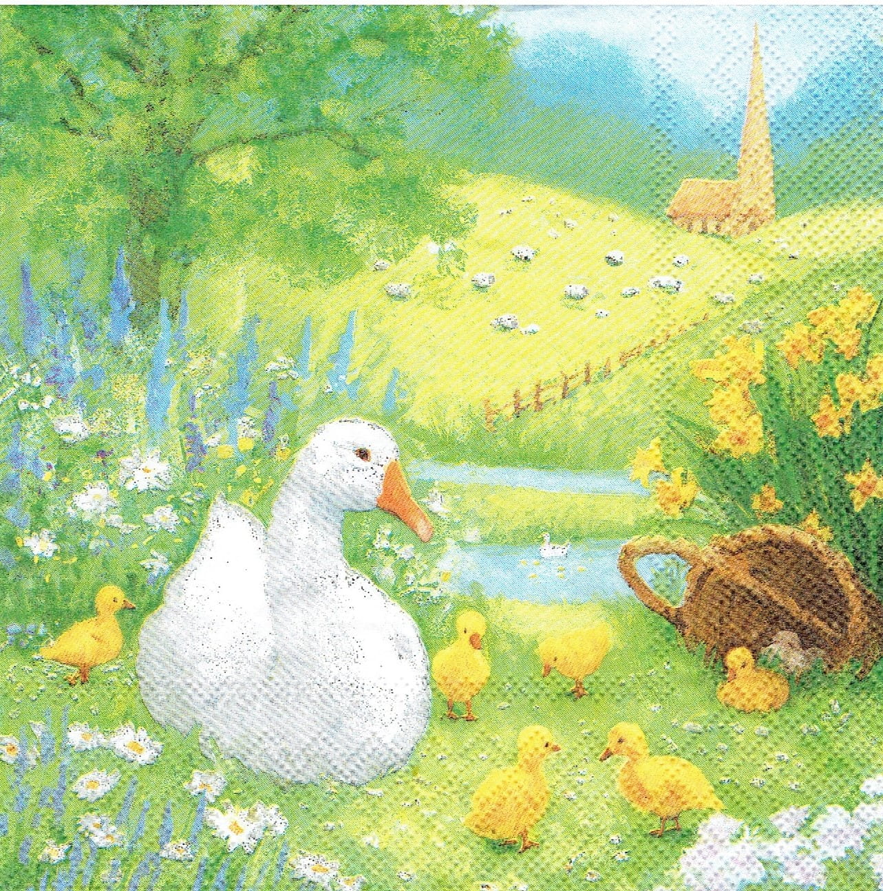Serwetka decoupage 33x33 cm - kaczki, staw, widok