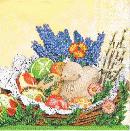 Serwetka decoupage 33x33 cm - koszyk wielkanocny z barankiem