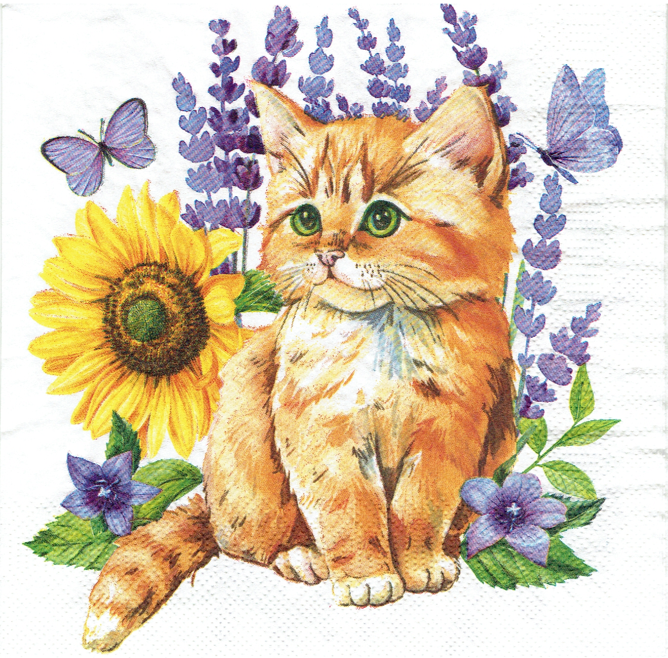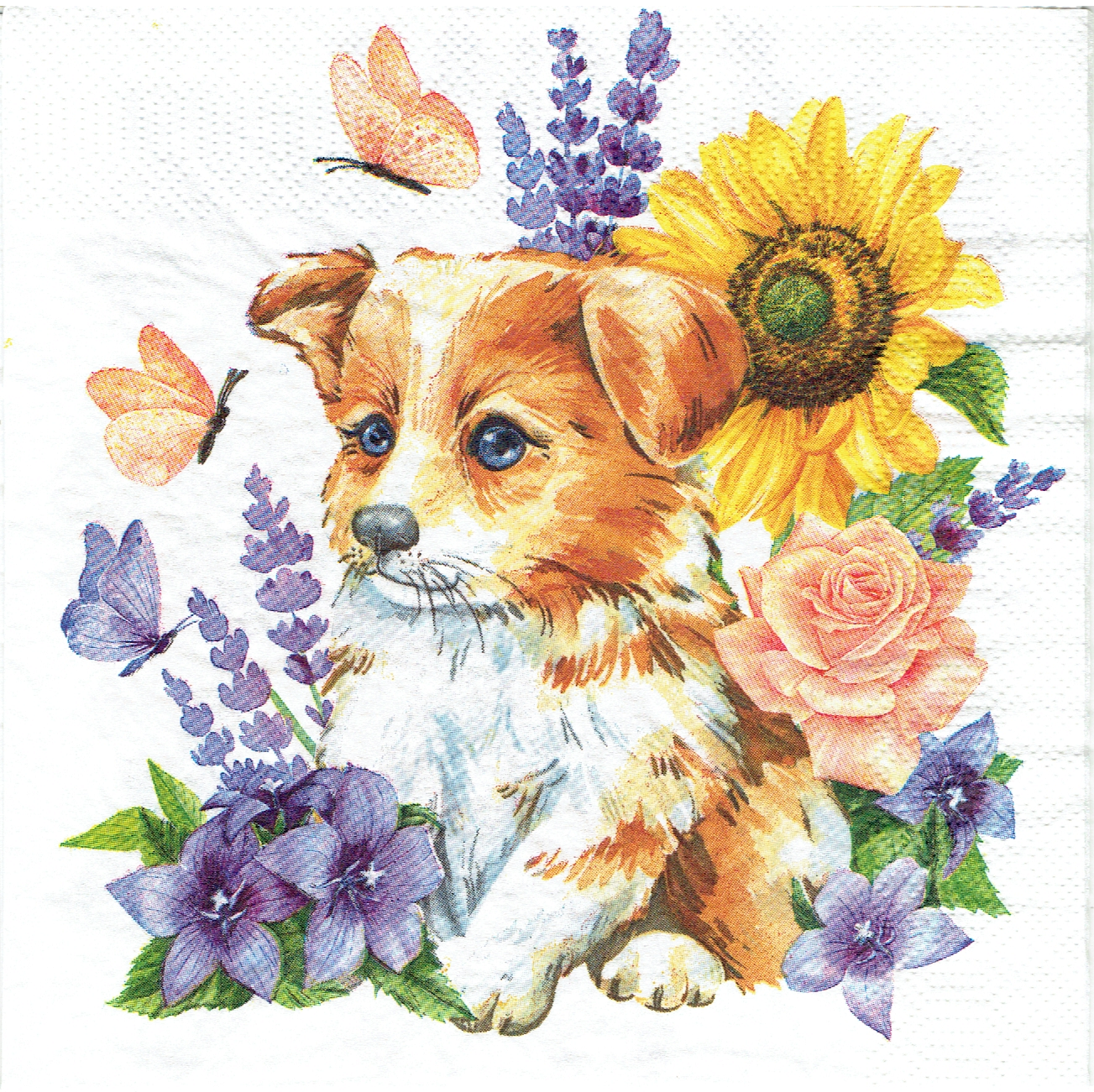 Serwetka decoupage 33x33 cm - kot, kotek, pies, piesek, kwiaty, motyle