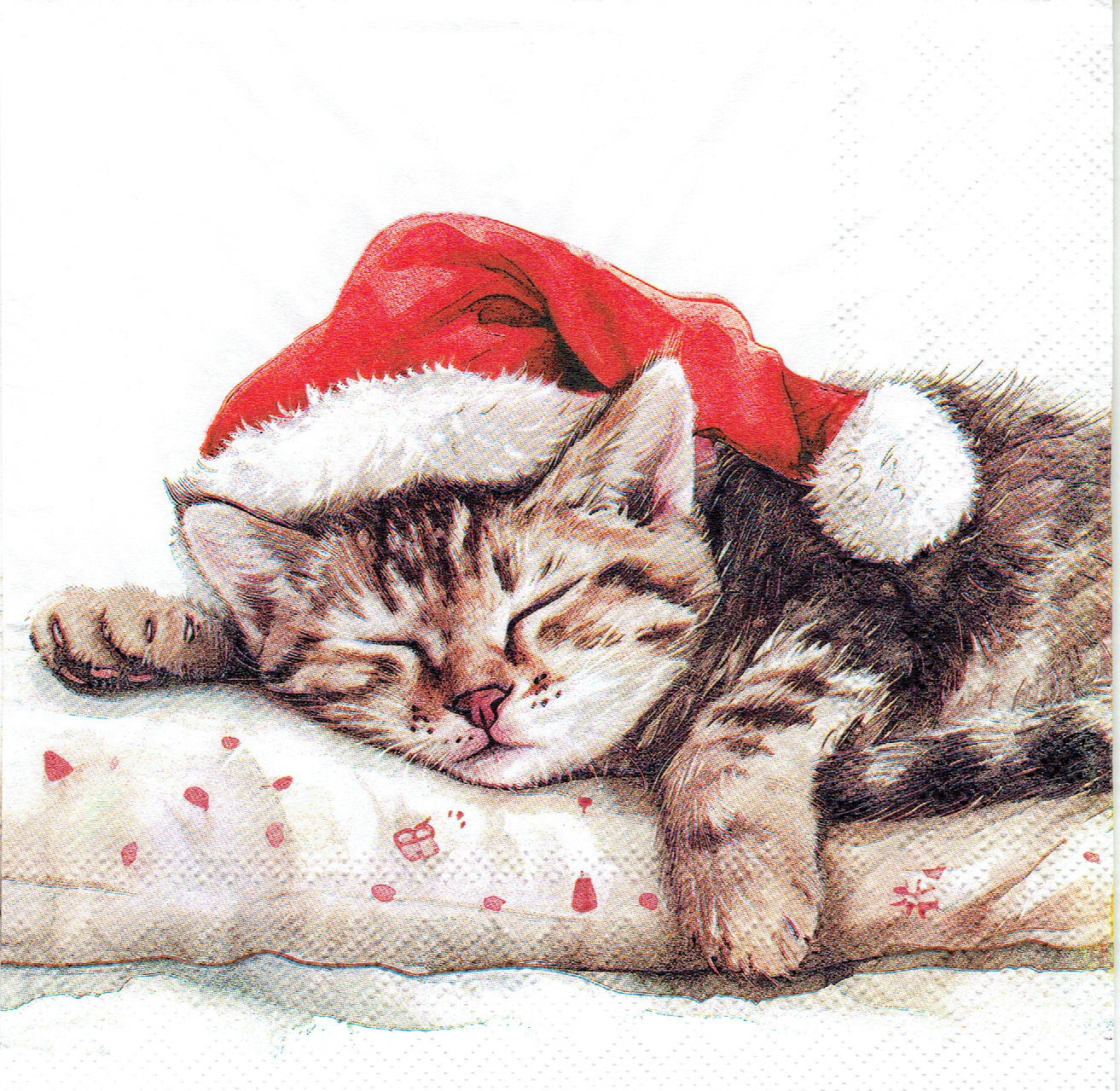 Serwetka decoupage 33x33 cm - kot, śpiący kotek, zima