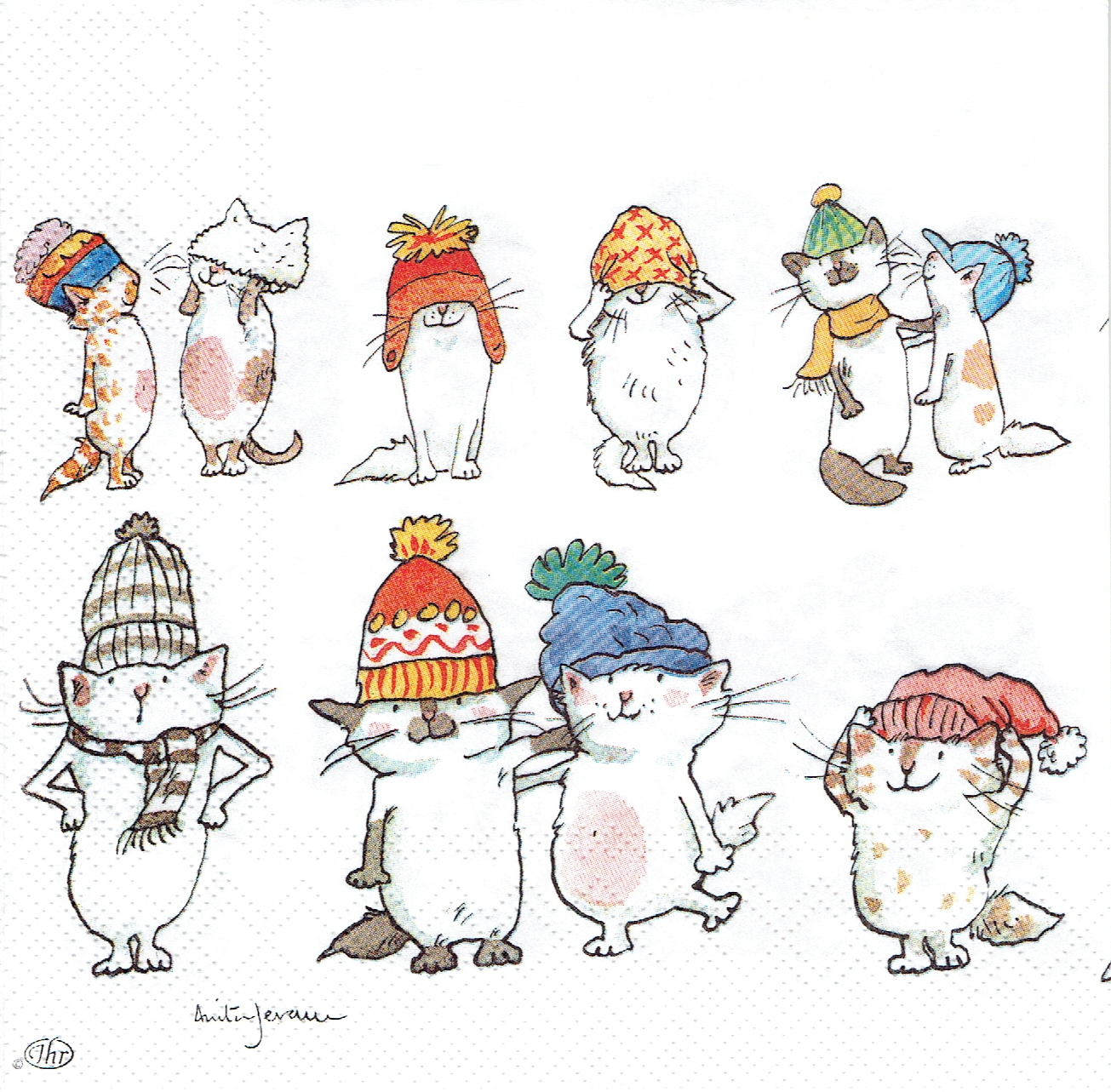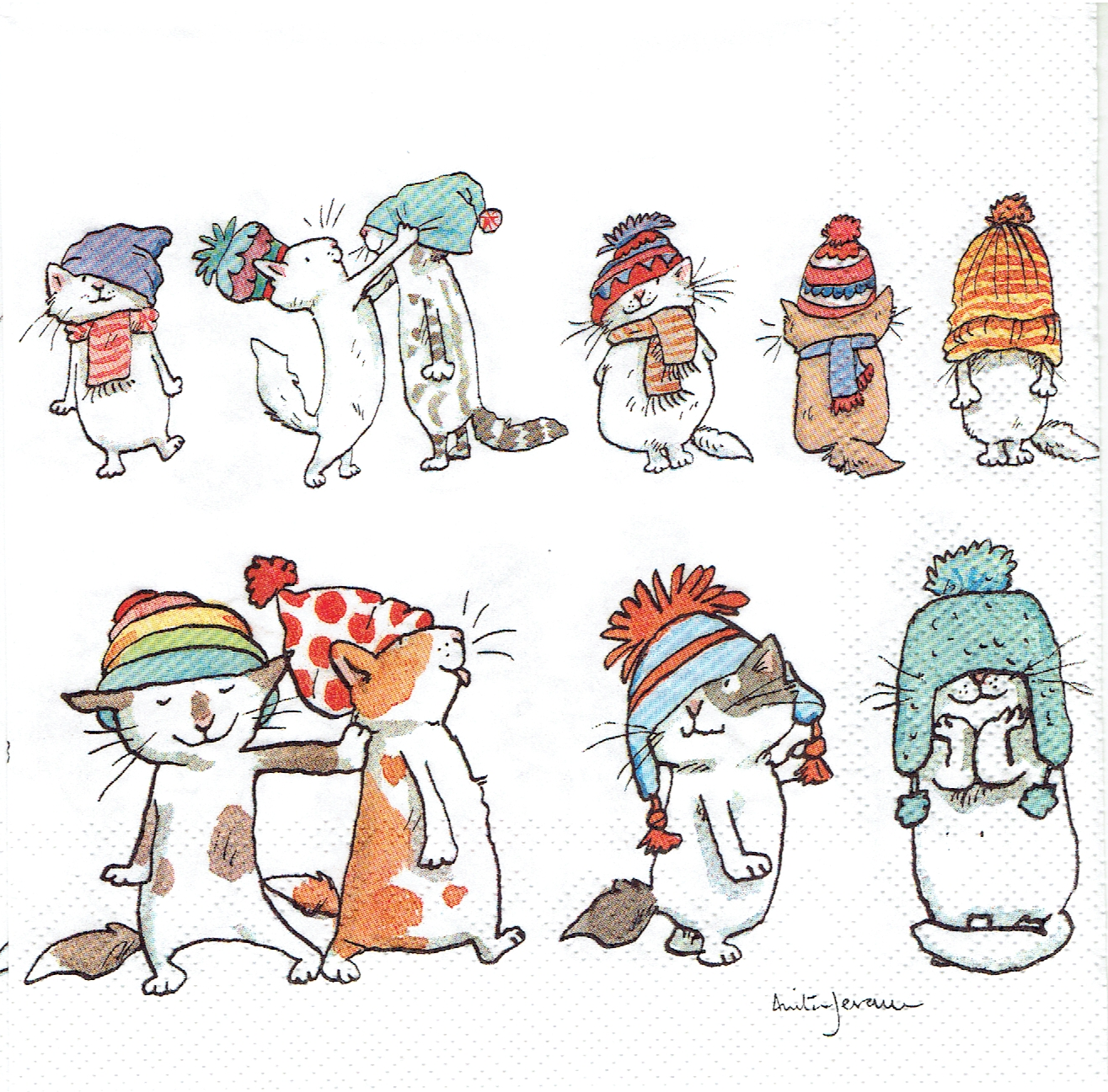 Serwetka decoupage 33x33 cm - koty, kotki, kotek, zima