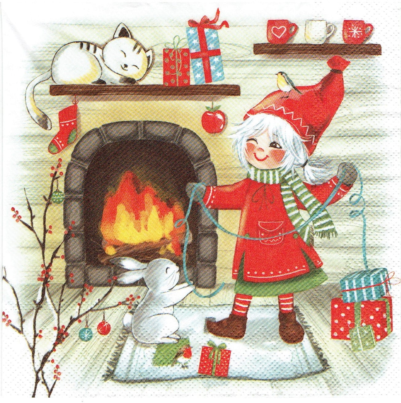 Serwetka decoupage 33x33 cm - krasnal, kotek, zajączek