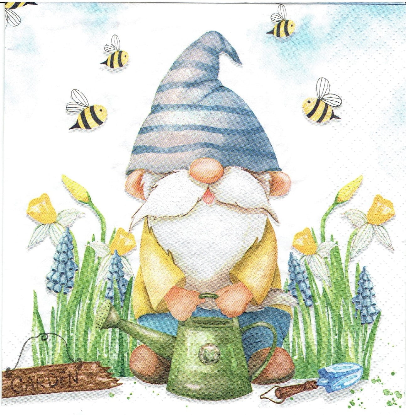Serwetka decoupage 33x33 cm - krasnal, ogród, kwiaty
