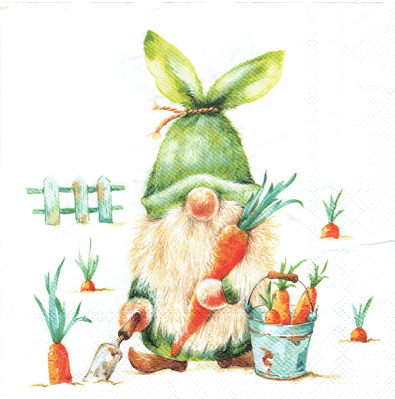 Serwetka decoupage 33x33 cm - krasnal, skrzat, ogrodnik