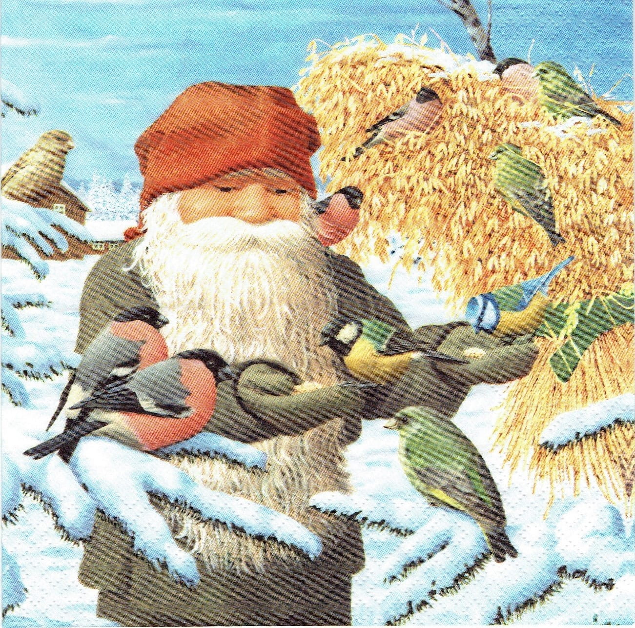 Serwetka decoupage 33x33 cm - krasnal i ptaki