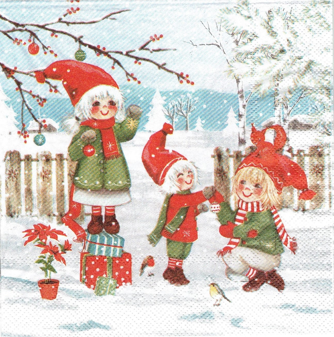 Serwetka decoupage 33x33 cm - krasnale, dzieci, zima