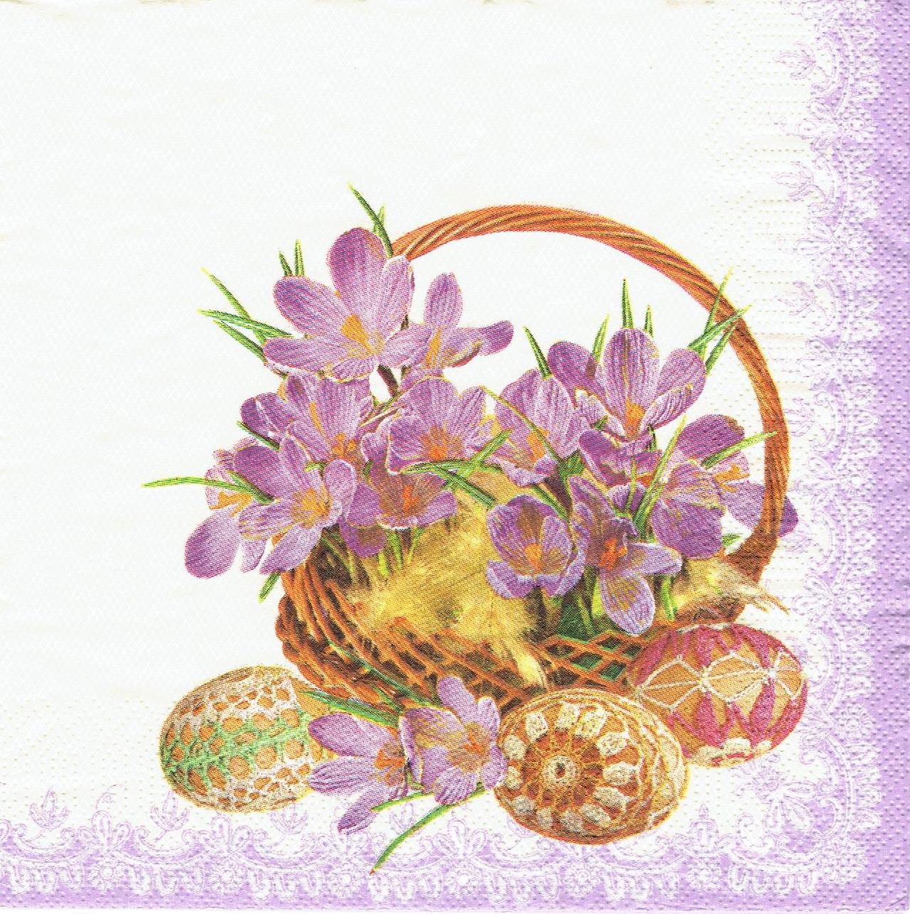 Serwetka decoupage 33x33 cm - krokusy, koszyk