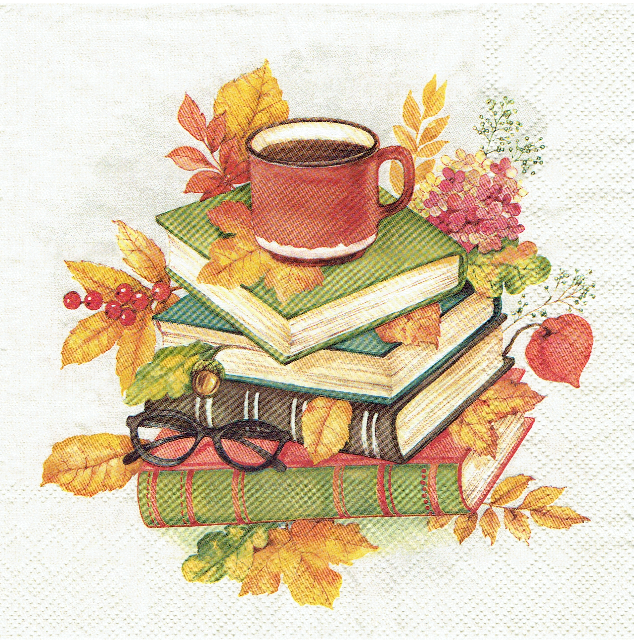 Serwetka decoupage 33x33 cm - książki, liście