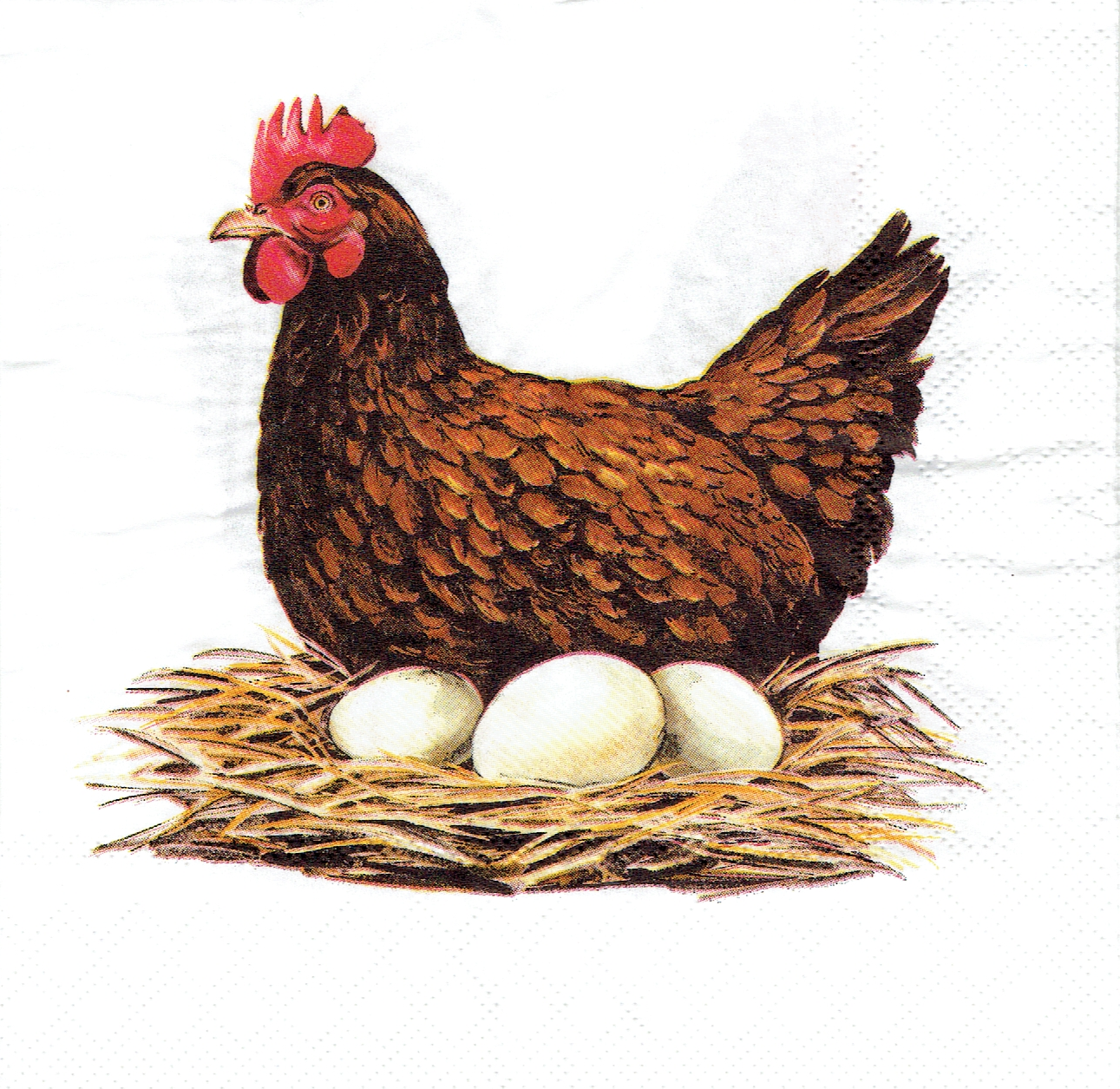 Serwetka decoupage 33x33 cm - kura, gniazdo, jajka