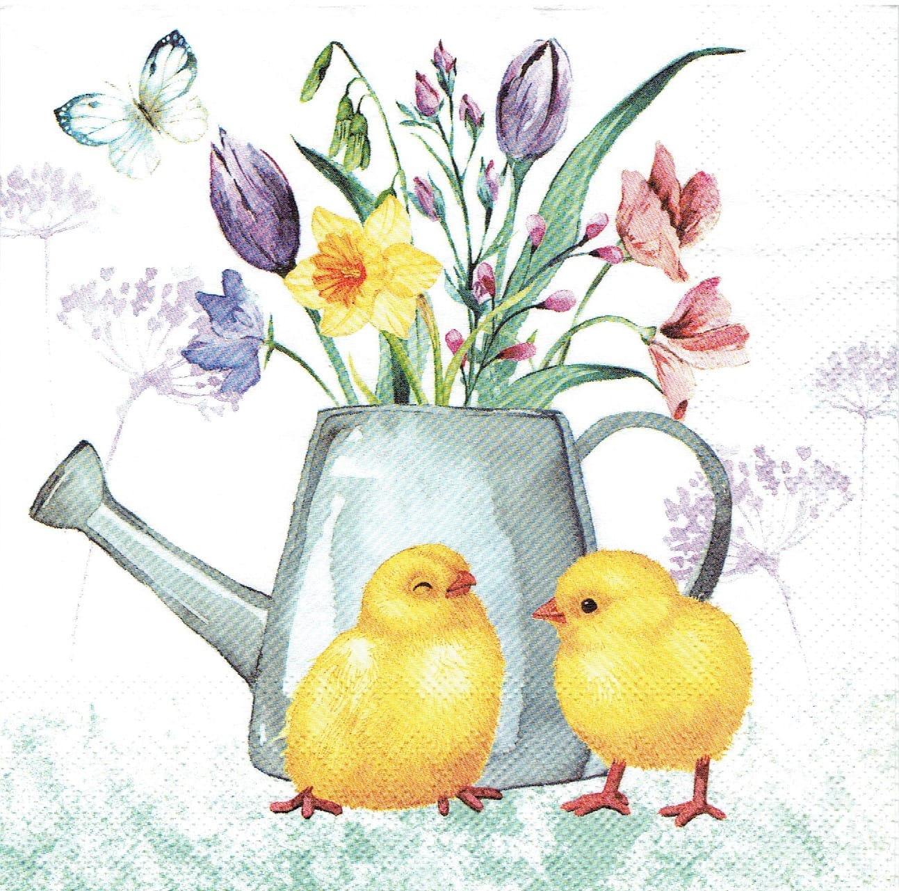 Serwetka decoupage 33x33 cm - kurczaki, konewka, kwiaty