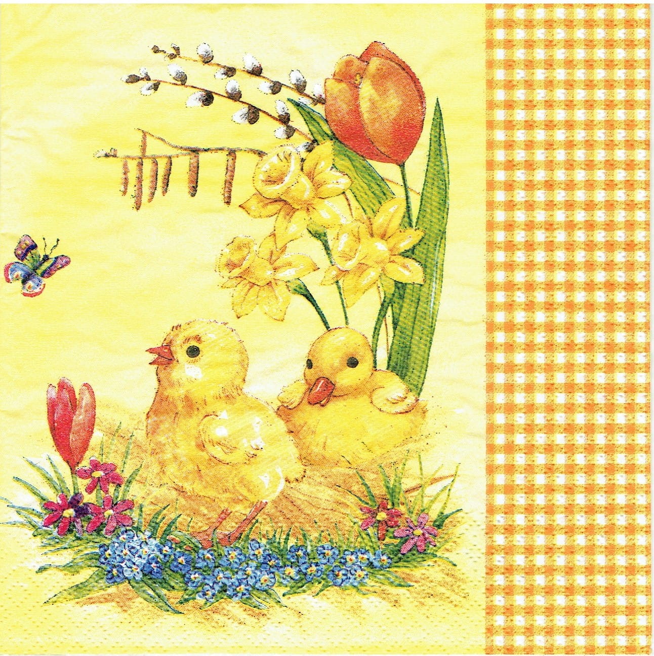 Serwetka decoupage 33x33 cm - kurczaki, kwiatki