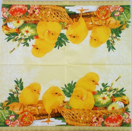 Serwetka decoupage 33x33 cm - kurczaki, pisanki, koszyk