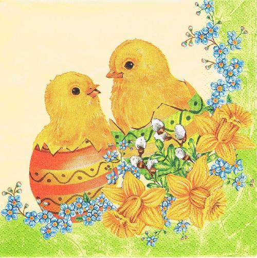 Serwetka decoupage 33x33 cm - kurczaki, pisanki, kwiaty