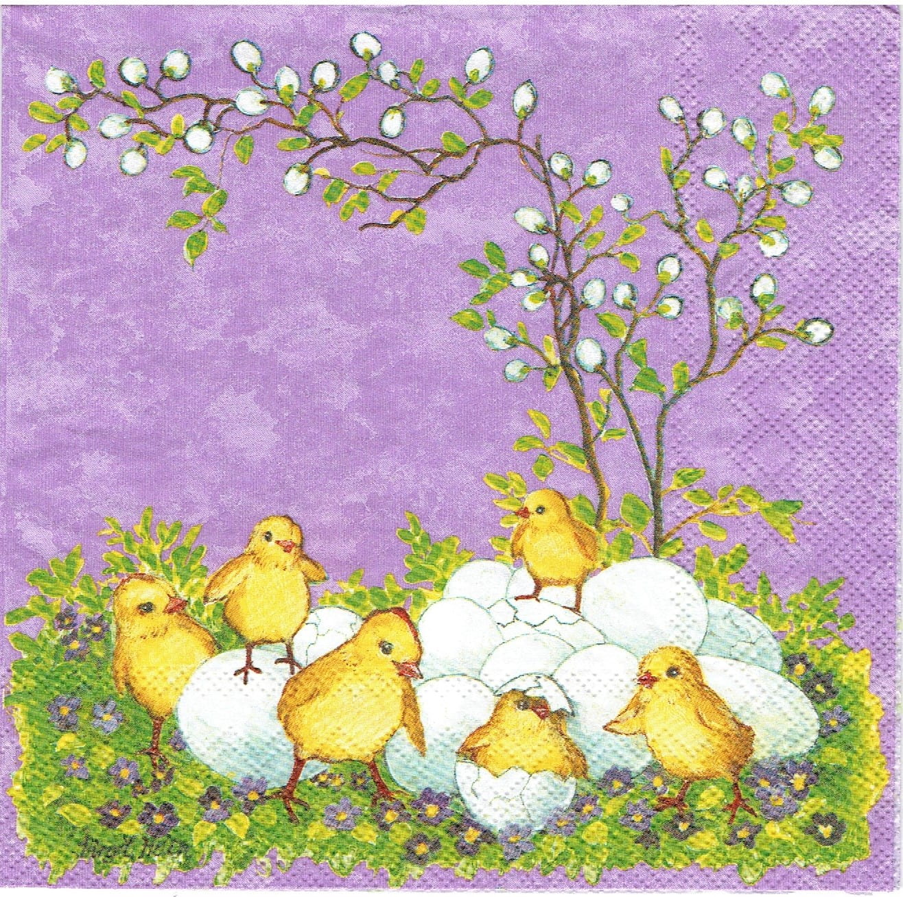 Serwetka decoupage 33x33 cm - kurczęta, jajka, bazie