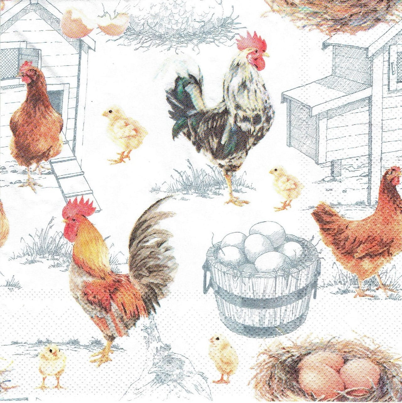 Serwetka decoupage 33x33 cm - kury, koguty, kurczęta