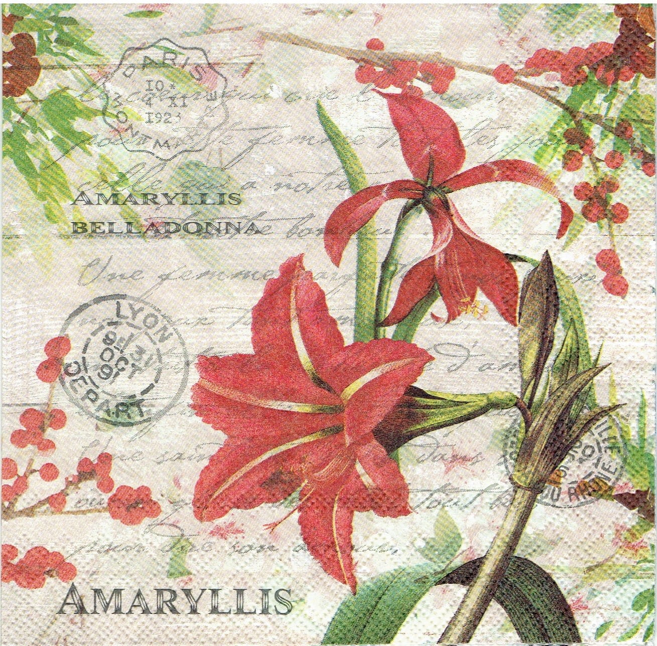 Serwetka decoupage 33x33 cm -kwiaty, amarylis