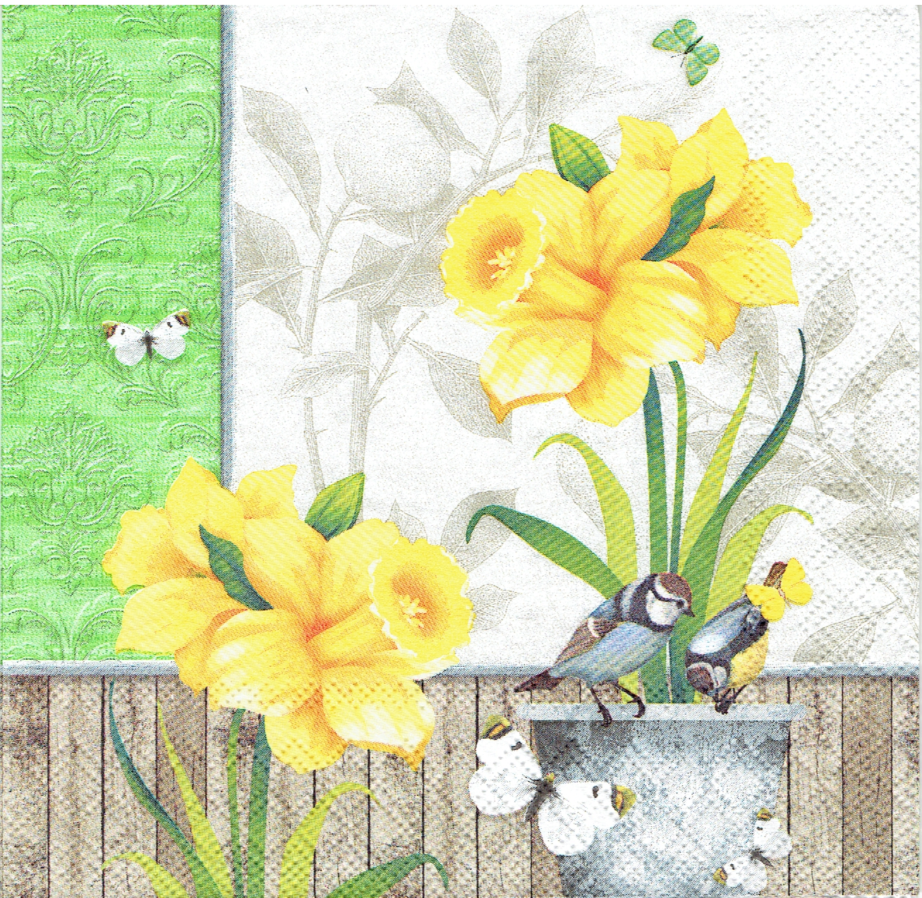 Serwetka decoupage 33x33 cm - kwiaty, narcyzy, ptaki, motyle