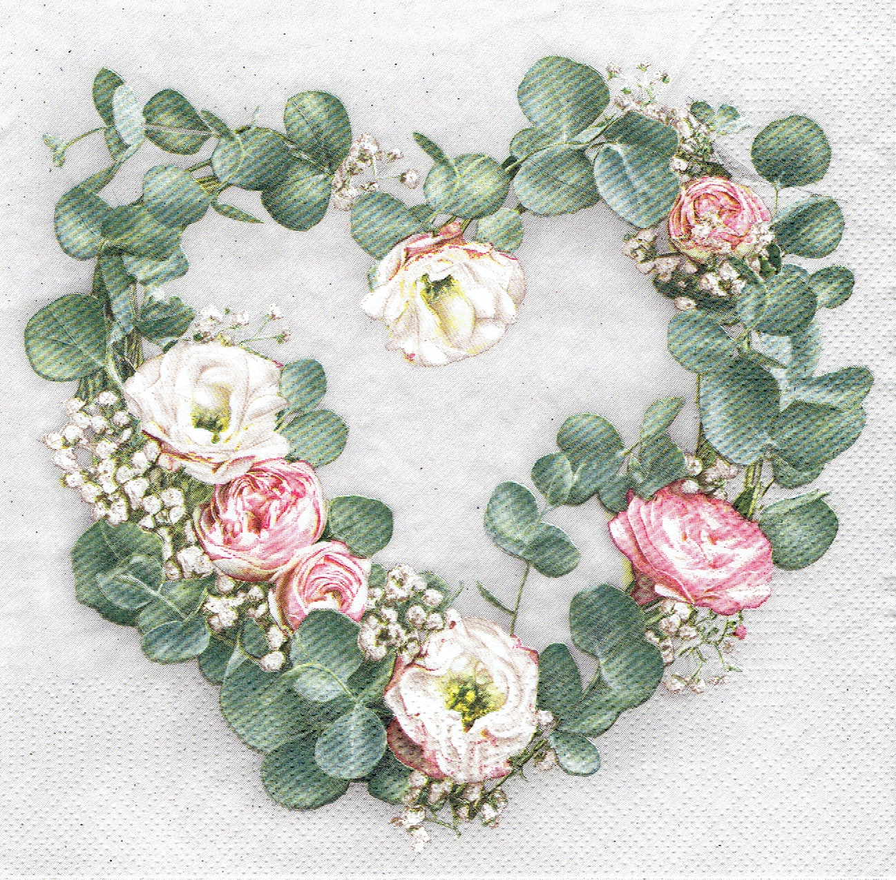 Serwetka decoupage 33x33 cm - kwiaty, róże, liście, serce