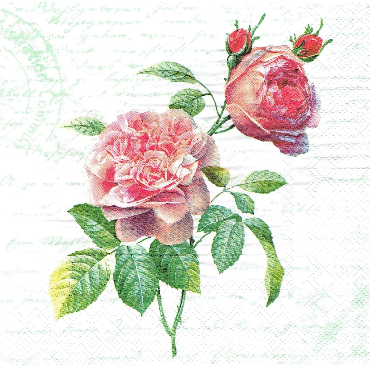 Serwetka decoupage 33x33 cm - kwiaty, róże, napisy