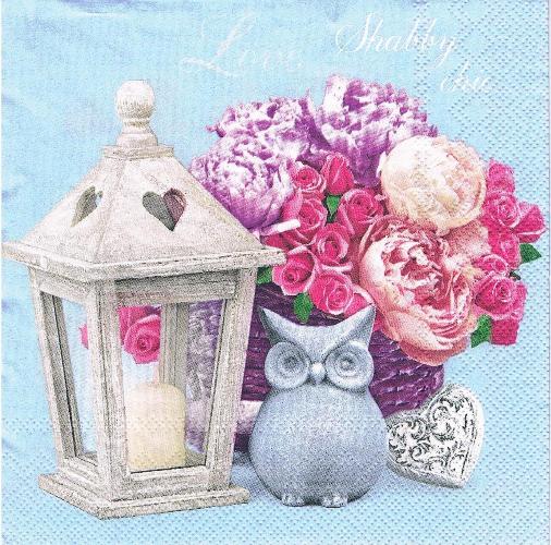 Serwetka decoupage 33x33 cm - kwiaty, świecznik, sowa
