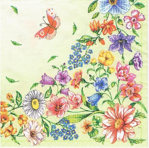 Serwetka decoupage 33x33 cm - kwiaty polne, motyle