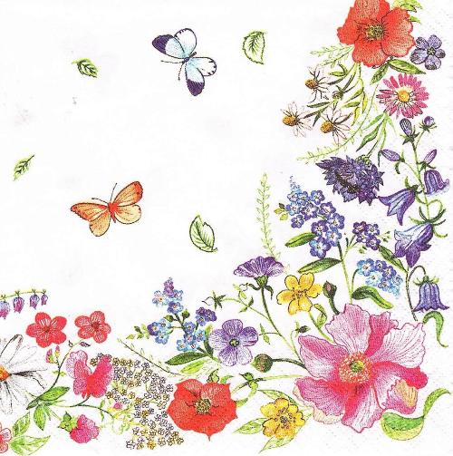 Serwetka decoupage 33x33 cm - kwiaty polne, motyle