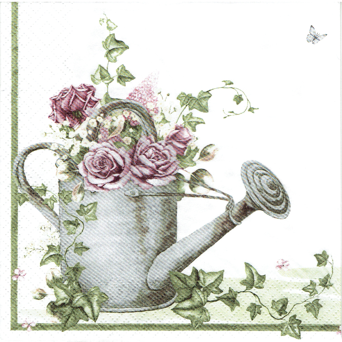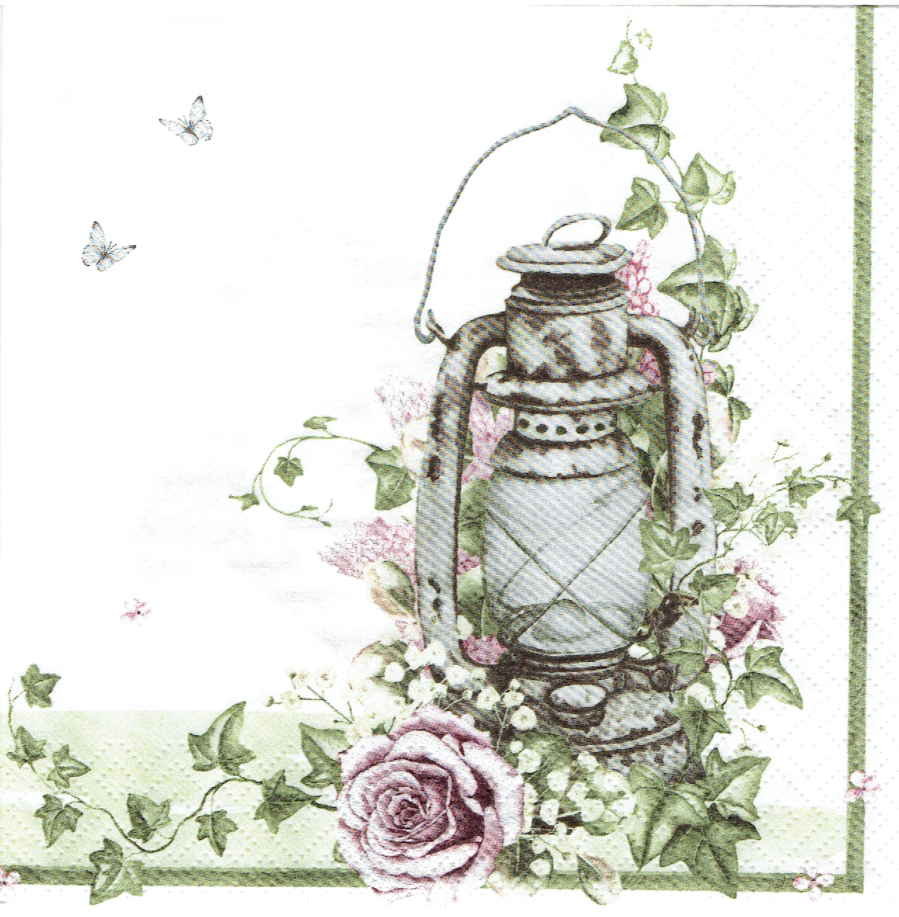 Serwetka decoupage 33x33 cm - lampion, konewka, kwiaty, liście, bluszcz