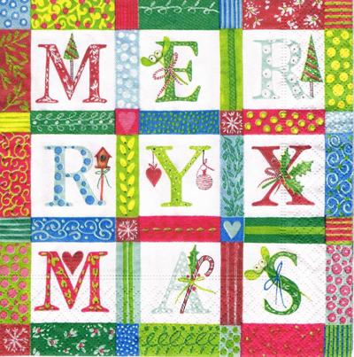 Serwetka decoupage 33x33 cm - litery, literki, święta