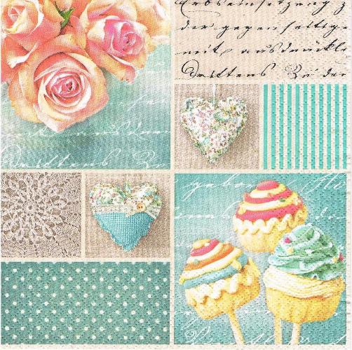 Serwetka decoupage 33x33 cm - lody, serca, kwiaty, napisy