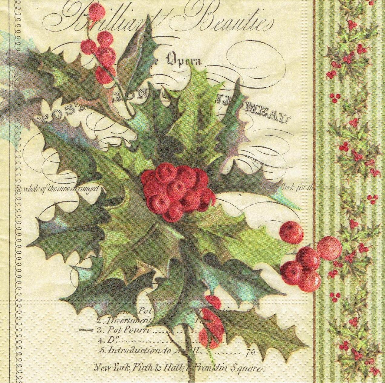 Serwetka decoupage 33x33 cm - ostrokrzew