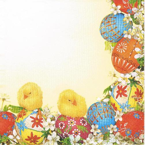 Serwetka decoupage 33x33 cm - pisanki, kurczaki