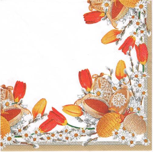 Serwetka decoupage 33x33 cm - pisanki, tulipany, stokrotki
