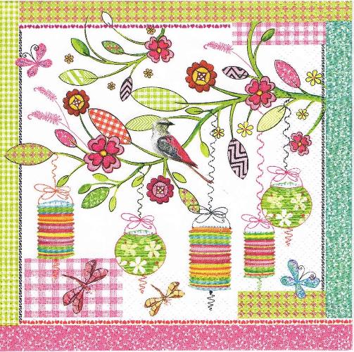 Serwetka decoupage 33x33 cm - ptak, gałązka, lampiony, motyle, kwiaty