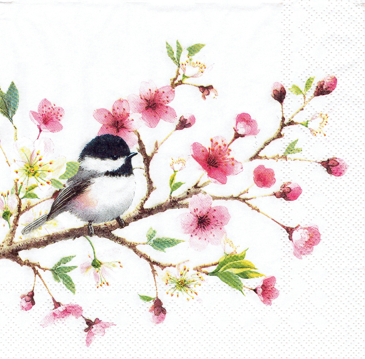 Serwetka decoupage 33x33 cm - ptak, ptaszek, gałązka, kwiaty
