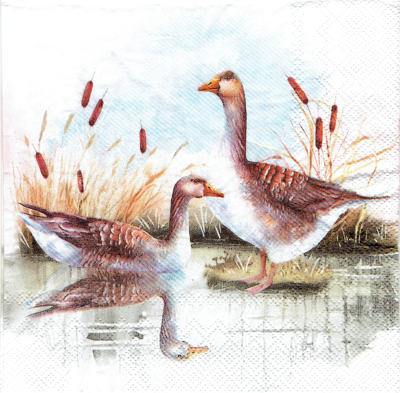 Serwetka decoupage 33x33 cm - ptaki, dzikie gęsi, staw