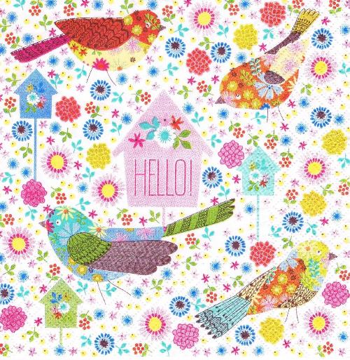 Serwetka decoupage 33x33 cm - ptaki, kwiaty