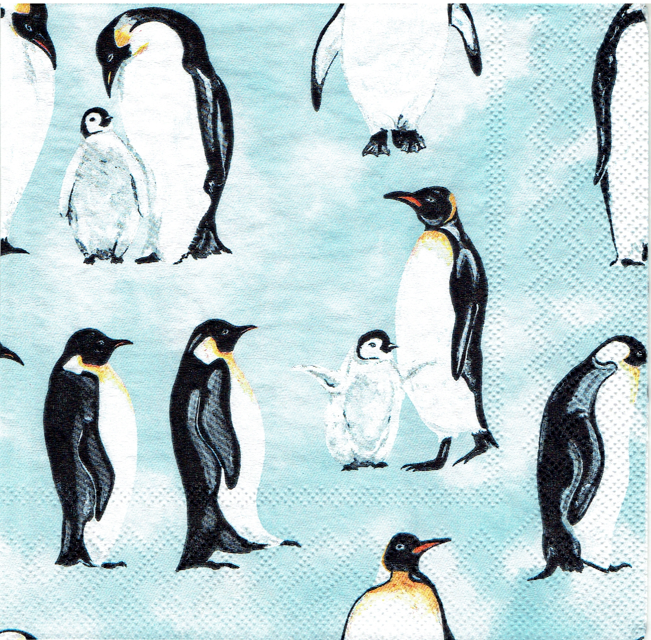 Serwetka decoupage 33x33 cm - ptaki, pingwiny, zima