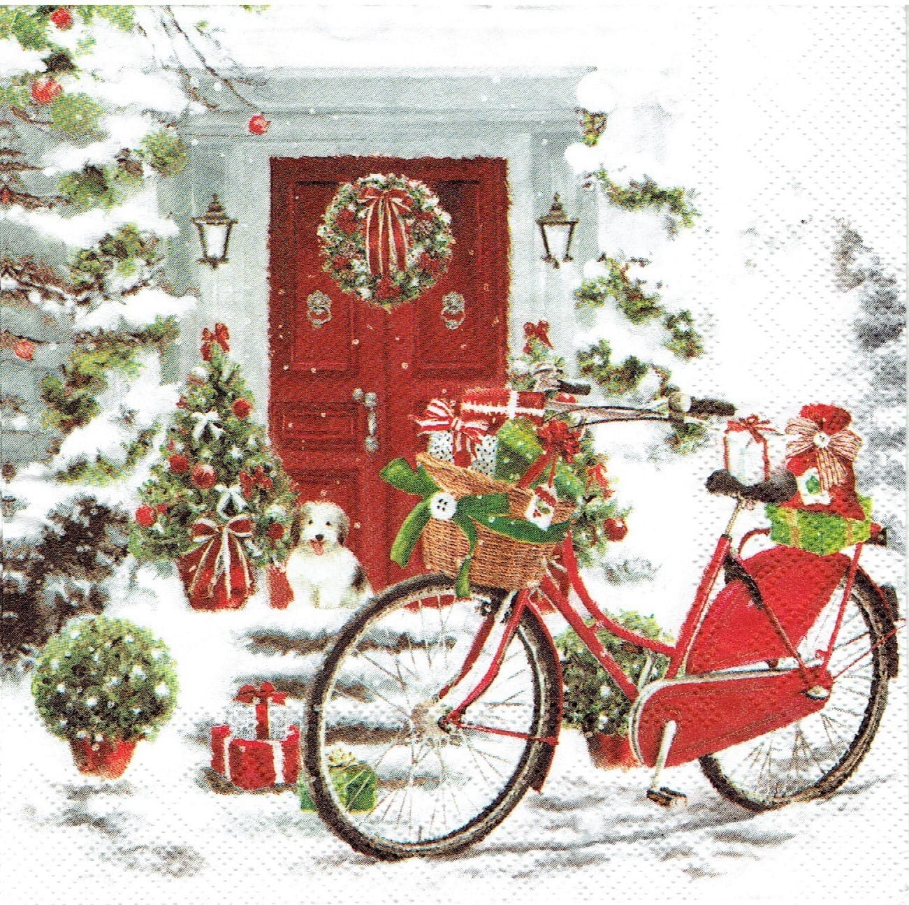 Serwetka decoupage 33x33 cm - rower, drzwi, choinki, zima