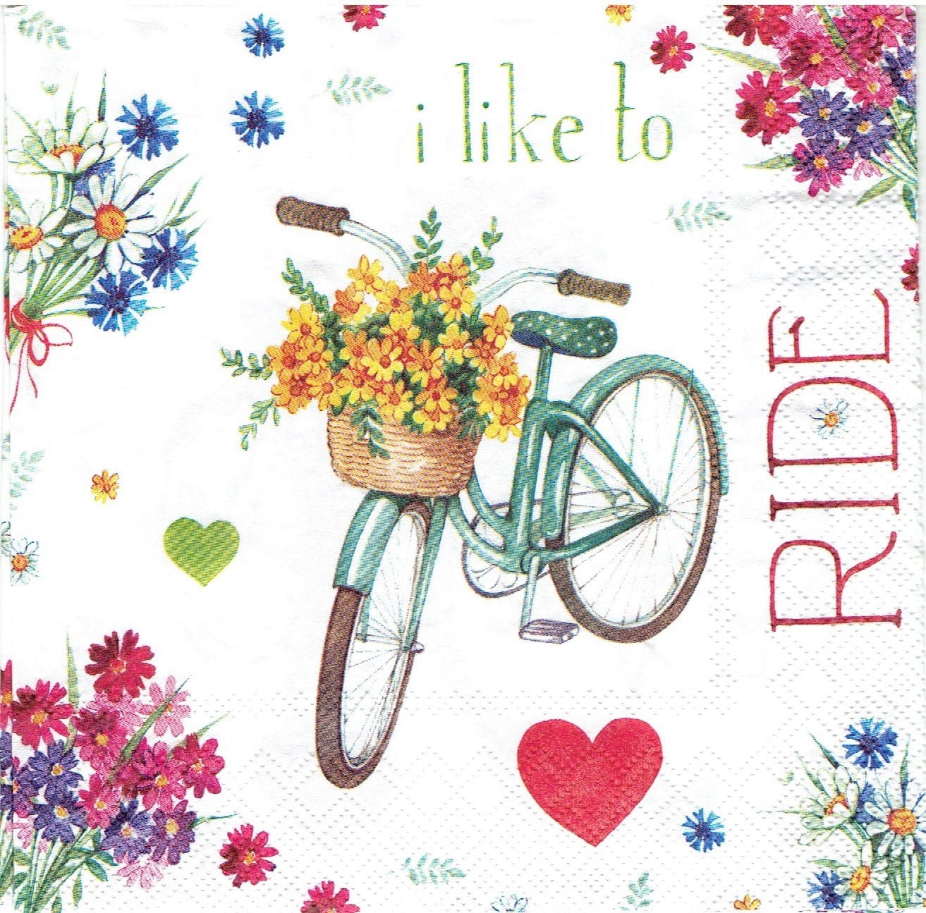 Serwetka decoupage 33x33 cm - rower, kwiaty