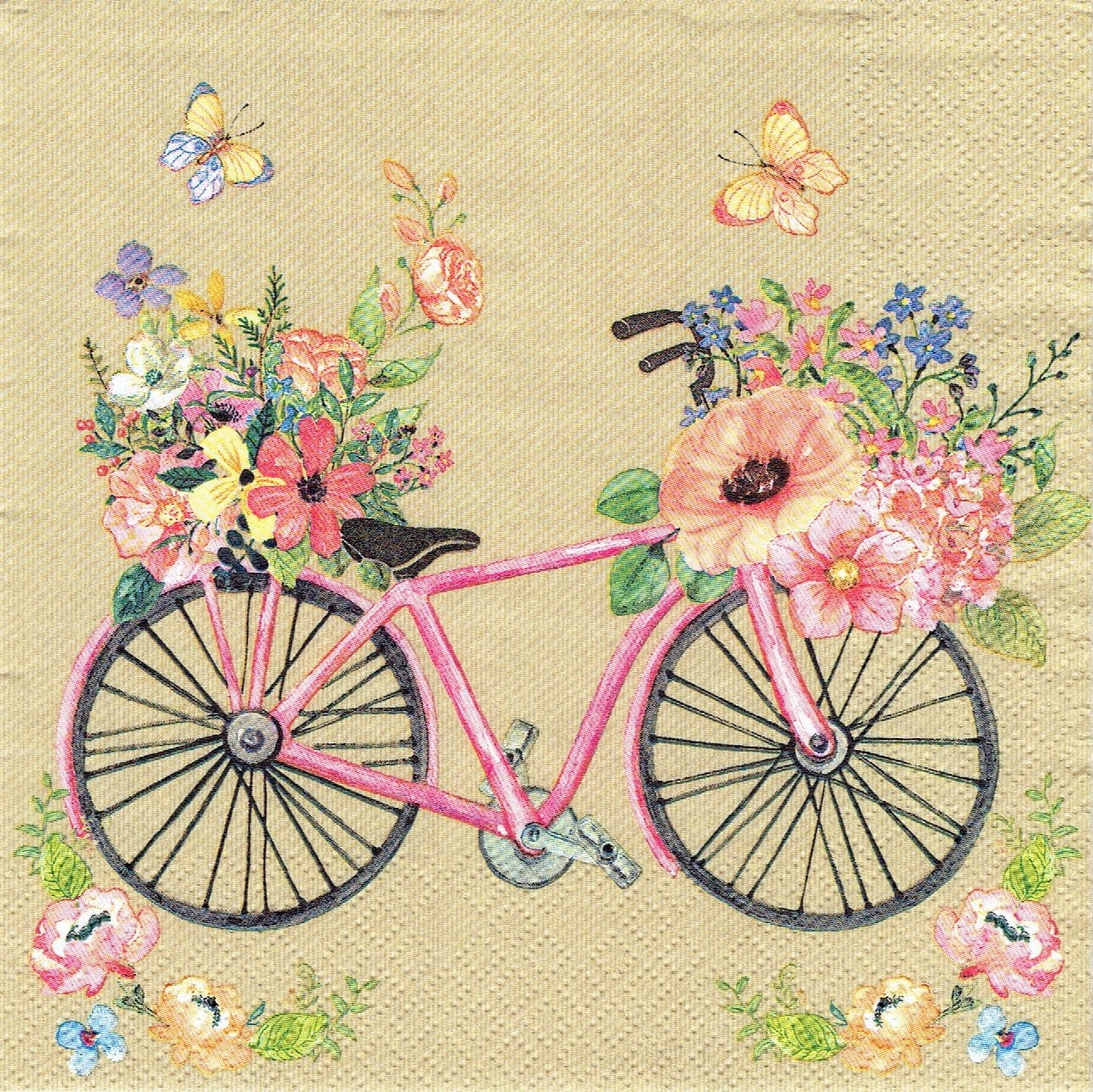 Serwetka decoupage 33x33 cm - rower, kwiaty