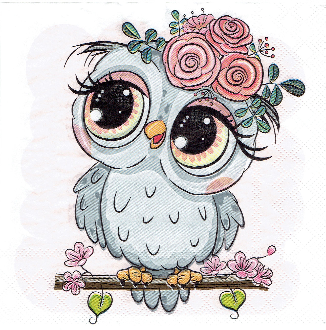Serwetka decoupage 33x33 cm - sowa, sówka, kwiaty