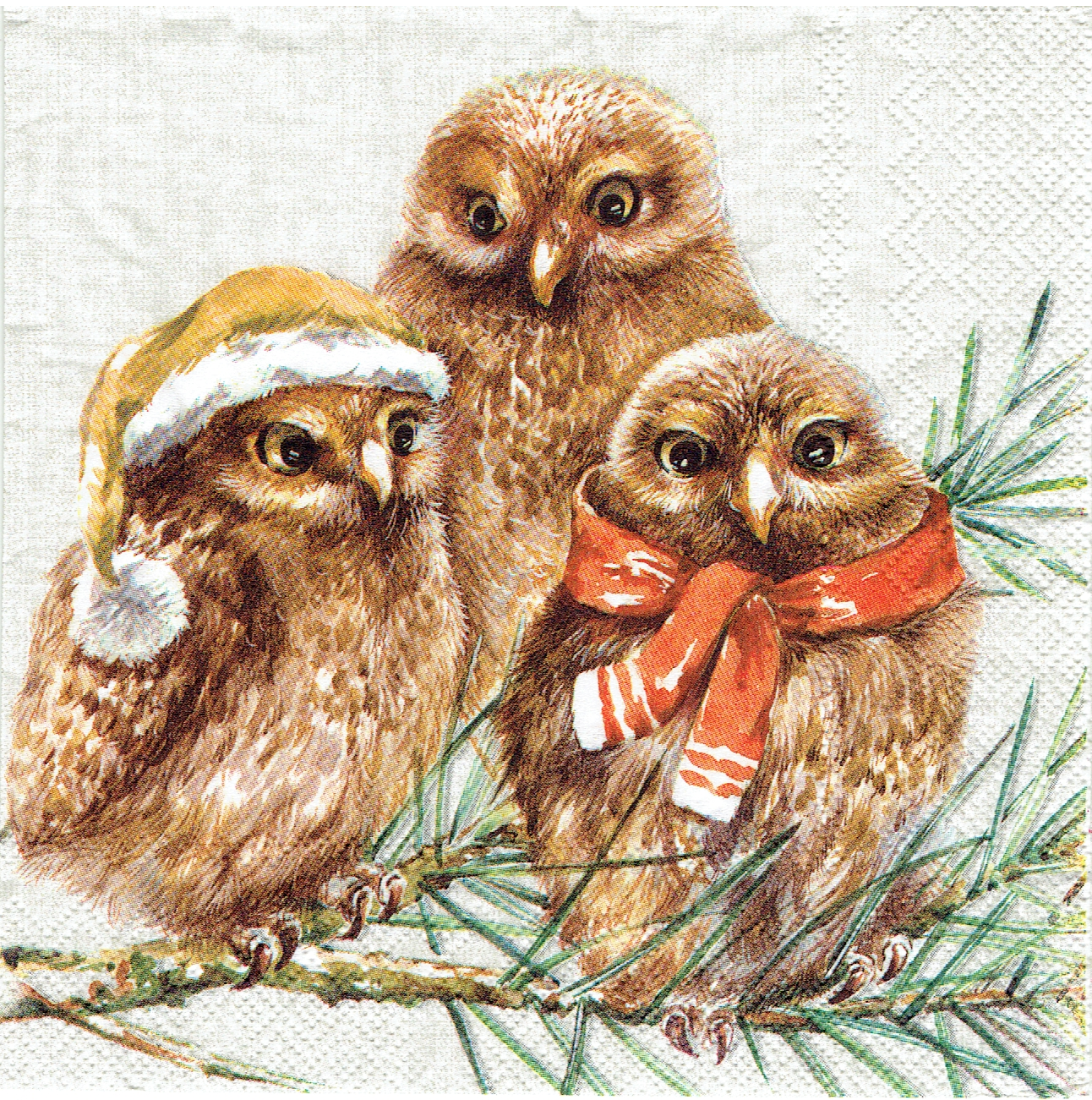 Serwetka decoupage 33x33 cm - sowy, sówki, ptaki, zima