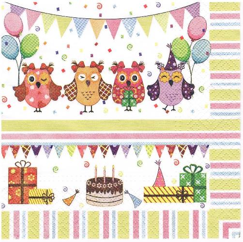 Serwetka decoupage 33x33 cm - sowy, sówki, torty