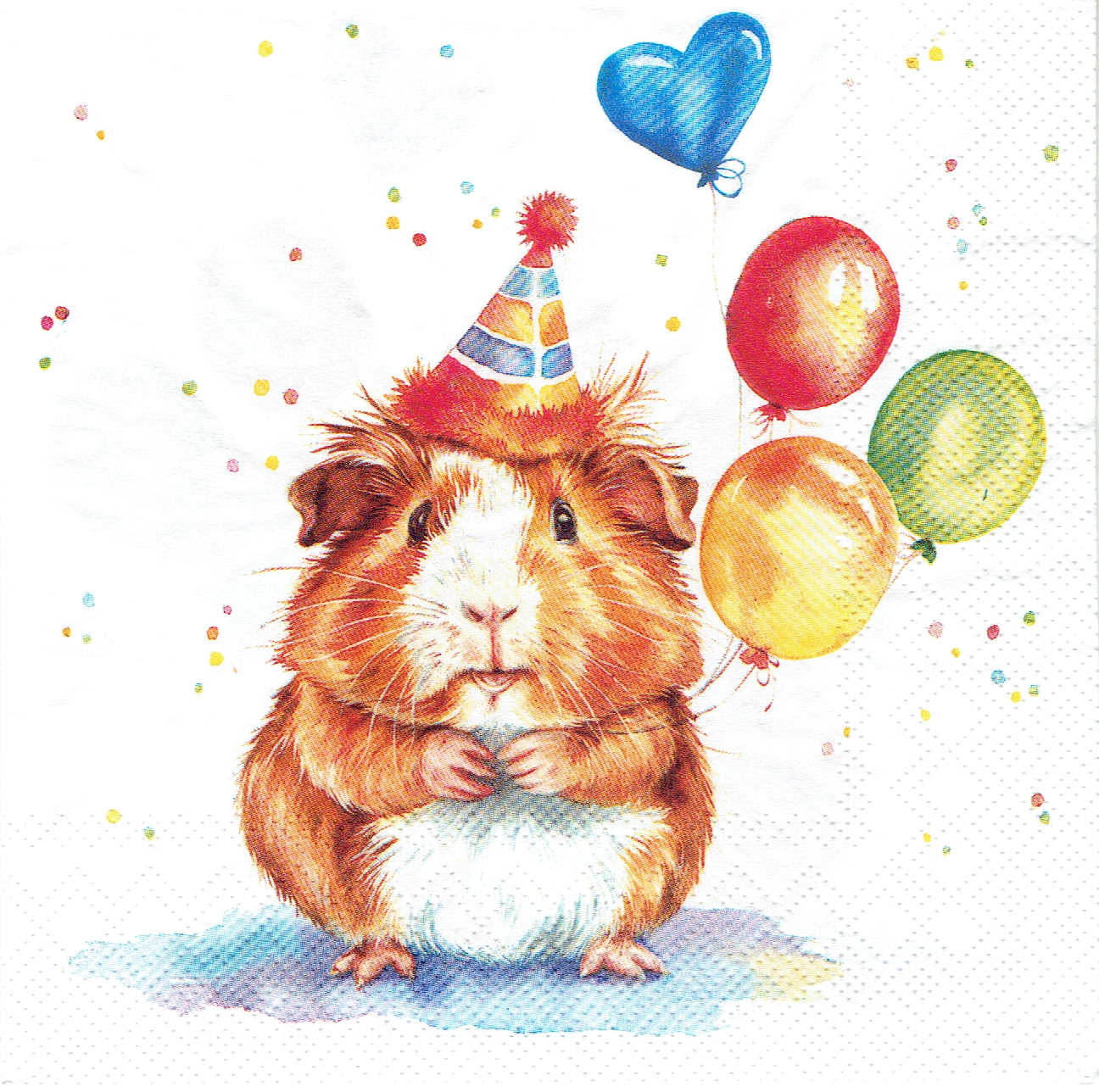 Serwetka decoupage 33x33 cm - świnka morska, balony, urodziny