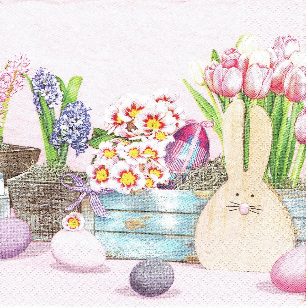 Serwetka decoupage 33x33 cm - zając, pisanki i kwiaty